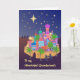 Una tarjeta de Navidades alegres para los abuelos Maravillosos, con un cielo estrellado, los tres sabios a lo lejos en sus camellos, y José, María y un burro abriéndose paso hacia la animada ciudad de Belén. Las letras, las Navidades Joy y las estrellas están pintadas con efecto oro (no con Relieve metalizado dorado). Diseño de medios mixtos de Judy Adamson.