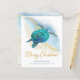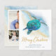 Ahorre dinero con estas tarjetas de Navidades costeras de bajo costo, en un papel más barato y un tamaño ligeramente menor. El diseño de la playa tropical incluye una tortuga azul turquesa de color agua sobre un fondo de playa abstracto con una falsa ola brillante purpurina dorada y escritura navideña de Feliz. En la parte trasera hay 3 plantillas de fotos para personalizar fácilmente las tarjetas con tus fotos familiares favoritas. Consulta la colección para ver más productos que coincidan, o contacta conmigo a través de Zazzle Chat si necesitas algo especial.
