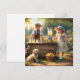 Parada de limonada vintage con dos niños pequeños y cachorros de estilo antiguo acuarela arte ai para dar un dulce sentimiento nostálgico de los viejos tiempos del verano.
