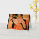 Una imagen tradicional de una pareja japonesa pasando juntos el tiempo. Ella está examinando algún material y él se ha detenido en su caligrafía para mirar. Es una gran carta celebrando un anversay.
