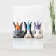 This design shows three small furry rabbits lined up side by side on a bright white background, each facing forward as if posing together 🐰. The left rabbit has soft gray fur and wears an orange cone party hat with white polka dots, giving it a sweet, inviting look. In the middle, a black-and-white rabbit wears a blue polka-dotted hat, angled slightly so it feels like it’s leaning in toward its neighbors in friendly company 🐇. On the right, a mostly white rabbit wears a purple polka-dotted hat, completing the trio with a gentle, togetherness-in-the-moment feel. Their dark, shiny eyes and tiny pink noses draw you in, and the close spacing between them suggests a cozy bond, like friends huddled for a photo. There is no background scene beyond the high, airy lighting, which highlights the fine fur texture and delicate whiskers. The white polka dots repeat across all three hats, and the purple hat sits above the right rabbit’s ears with crisp edges against the pale backdrop.