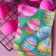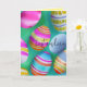 Esta colorida tarjeta de Pascua cuenta con varios huevos de Pascua decorados en tonos rosa, amarillo, azul, verde azulado y naranja. El texto destacado dice: Pascua está aquí, espero que la tuya sea especial de eggstra, feliz Pascua. Haga clic en "Personalizar esta plantilla" para cambiar o eliminar fácilmente el texto que aparece.