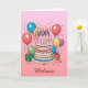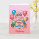 Una divertida y alegre carta ilustrada con tarta de cumpleaños y globos coloridos sobre fondo rosa Ombre. Puede cambiar el nombre para que sea especial para la persona de cumpleaños o dejarlo en blanco (sin nombre) para convertirlo en una tarjeta genérica. También puedes cambiar el mensaje de cumpleaños dentro con tus propios saludos y deseos. Celebrar la ocasión de cumpleaños con alegría. También disponible en una versión de Ombre Azul.