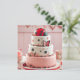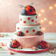 CARIÑOSA MARIQUITA ROJA Y NEGRA EN UN PASTEL DE CUMPLEAÑOS EN LA PARTE DELANTERA DE LA TARJETA. TEXTO EDITABLE EN LA PARTE POSTERIOR.