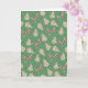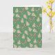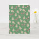 Estas tarjetas de Navidad de personalizable presentan un patrón de pasteles de chiringuito de navidad blanca, arcos de menta a rayas rojas y blancas, y pequeñas estrellas rojas en un fondo verde musgo.