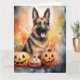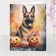 Tarjeta Pastor Alemán de Halloween con Calabazas Espeluzna