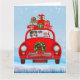 Tarjeta Pastor Australiano En Coche Con Santa Claus
