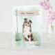 ¡Celebremos un día especial con la energía sin límites de un pastor australiano! Esta hermosa tarjeta de cumpleaños ilustrada muestra al australiano inteligente y animado contra un paisaje acuático exterior de césped y cielo. Una banderita rústica de estilo banderín aporta un toque alegre, haciendo de esta carta una elección perfecta para los amantes del espíritu aventurero y afectuoso de esta notable raza.