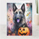 Tarjeta Pastor Belga de Halloween con calabazas espantoso