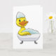 Tarjeta Pato en el baño con bañera y espuma