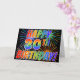 El frente de este vibrante, divertido y emocionante diseño de tarjetas de felicitación presenta un patrón colorido inspirado en fuegos artificiales de celebración, junto con el mensaje "¡FELIZ CUMPLEAÑOS 30!", con un patrón gradiente inspirado en el arcoiris multicolor, sobre un fondo de color negro. El interior presenta un mensaje de saludo personalizado, o tal vez se pueda borrar y dejar en blanco si se va a escribir un mensaje a mano. Una tarjeta de felicitación como esta puede ser una manera feliz y divertida de reconocer el 30 cumpleaños de alguien. [~Z0000355]