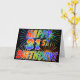 El frente de este emocionante, divertido y vibrante diseño de tarjetas de felicitación presenta un colorido patrón inspirado en fuegos artificiales de celebración, junto con el mensaje "¡FELIZ CUMPLEAÑOS 31!", que tiene un patrón multicolor de gradiente inspirado en el arcoiris, sobre un fondo de color negro. En el interior aparece un mensaje de saludo de personalizable, o tal vez se pueda borrar y dejar en blanco si se desea escribir un mensaje a mano. Una tarjeta de felicitación como esta puede ser una manera feliz y divertida de reconocer el 31 cumpleaños de alguien. [~Z0000355]