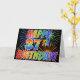 El frente de este divertido, llamativo y emocionante diseño de tarjetas de felicitación presenta un colorido patrón inspirado en fuegos artificiales de celebración, junto con el mensaje "¡FELIZ CUMPLEAÑOS 37!", que presenta un patrón multicolor de arcoiris como gradiente, sobre un fondo de color negro. En el interior aparece un mensaje de saludo de personalizado, o tal vez se pueda borrar y dejar en blanco si se va a escribir un mensaje a mano. Una tarjeta de felicitación como esta podría ser una manera divertida y feliz de enviar un mensaje de felicitación de cumpleaños a alguien que está celebrando su cumpleaños número treinta y siete. [~Z0000355]