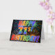 El frente de este divertido, llamativo y emocionante diseño de tarjetas de felicitación presenta un colorido patrón inspirado en fuegos artificiales de celebración, junto con el mensaje "¡FELIZ CUMPLEAÑOS 71!", que presenta un patrón multicolor de arcoiris como gradiente, sobre un fondo de color negro. En el interior aparece un mensaje de saludo de personalizado, o tal vez se pueda borrar y dejar en blanco si se va a escribir un mensaje a mano. Una tarjeta de felicitación como esta podría ser una manera feliz y divertida de enviar un mensaje de bienvenida a alguien que está celebrando su cumpleaños número setenta. [~Z0000355]