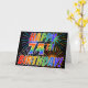 El frente de este emocionante, vibrante y llamativo diseño de tarjetas de felicitación presenta un patrón colorido inspirado en fuegos artificiales de celebración, junto con el mensaje "¡FELIZ CUMPLEAÑOS 74!", con un patrón multicolor de arcoiris como gradiente, sobre un fondo de color negro. En el interior aparece un mensaje de saludo personalizado, o tal vez se pueda borrar y dejar en blanco si se va a escribir un mensaje a mano. Una tarjeta de felicitación como esta puede ser una manera feliz y divertida de reconocer el 74 cumpleaños de alguien. [~Z0000355]