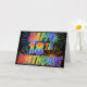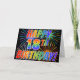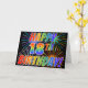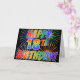 La parte delantera de este diseño de tarjeta de felicitación emocionante, llamativo y vibrante presenta un patrón colorido de fuegos artificiales de celebración, junto con el mensaje "¡FELIZ CUMPLEAÑOS 18!" con un patrón de gradiente inspirado en un arcoíris multicolor, sobre un fondo de color negro. El interior presenta un mensaje de felicitación personalizable, o quizás podría estar en blanco si se desea escribir un mensaje a mano en su lugar. Una tarjeta de felicitación como esta podría ser divertida para enviar a alguien que celebre su cumpleaños número 18.