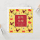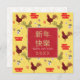 Tarjeta mediana. Año Nuevo Chino. Fondo tradicional del año lunar con marco dorado elegante, peonía rosada, sakuras de flor, farolillos y flores de primavera, gallo, melocotón ornamental tradicional y fondo de color turquesa . Feliz año nuevo chino 2025, símbolo de fortuna, patrón rojo, estilo de arte de papel. Diseño de moda con plantilla de texto, para invitaciones y papelería > Tarjetas de felicitación.