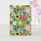 Un lindo patrón floral de flores simples y coloridas y hojas en varios colores sobre un fondo verde.