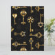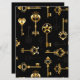 Patrón incomparable de llaves antiguas, doradas y de silueta sobre fondo negro.