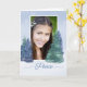 Enmarca tu foto con estas elegantes acuarelas que parecen árboles verdes, pues deseas paz a tu familia y amigos. Personalice esta tarjeta azul y verde de vacaciones con su nombre bajo la palabra paz. ¡Será una carta muy memorable!