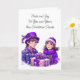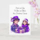 tarjeta de vacaciones para Navidades de acuarela de bonito. Pequeños y adorables niños de época vestidos con ropa morada de estilo antiguo.