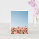 Field of peach flowers. Blank greeting card.