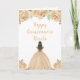Esta tarjeta de cumpleaños de Quinceanera cuenta con flores florales de color crema de melocotón purpurina y una hermosa princesa con pelo castaño y un vestido elegante. Es perfecto para una fiesta de cumpleaños de Quinceanera.