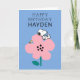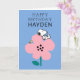 Celebra el cumpleaños de tu hijo con esta tarjeta super adorable de Snoopy y Woodstock. Personalízala con el nombre y la edad de tu hijo.