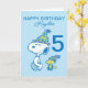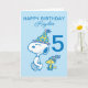 Celebra el cumpleaños de tu hijo con esta tarjeta de Snoopy súper linda. Personalízala con el nombre y la edad de tu hijo.