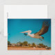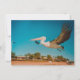 Un pelícano volando a lo largo de la playa en Monkey Mia, Australia Occidental.