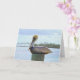 En la parte de atrás de la tarjeta, un pelícano de Brown se coloca en la resaca de Cabo Cañaveral, la Florida.