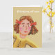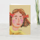 Chica con pigtails cortas y arcos rojos de estilo retro Uso para cualquier saludo eg. Día de la Madre madre granma o cumpleaños