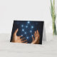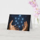 Las estrellas brillantes forman una forma geométrica contra un cielo estrellado, acariciado suavemente por un par de manos. Se puede cambiar el texto interior.