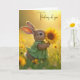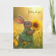 Tarjeta Pensando en ti, conejito, masticando un girasol