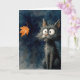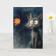 Tarjeta Pensando en ti deslizar un gato con hojas de otoño