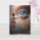 Tarjeta Pensando en ti, pequeña niña tejiendo lágrimas