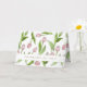 El diseño del producto presenta un patrón de flores de tulipán rosa. Esta ilustración botánica con texto personalizado hace que las tarjetas de felicitación modernas y chic sean únicas - PENSANDO EN TI.