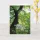 Una tarjeta de 'pensamiento tuyo' para un paciente de cáncer con una fotografía de la luz solar a través de las hojas de un árbol viejo que mira el desfiladero de Clydach, Gales del Sur, Reino Unido. En blanco para tu propio mensaje.