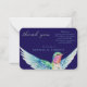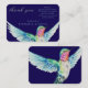 Un impactante colibrí colorido de color agua pintado a mano en vuelo adorna esta delicada y amorosa tarjeta conmemorativa de agradecimiento en azul audaz contrastada con escritura verde suave y aqua