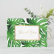 Un elegante motivo tropical de hojas de monstera acuarela se convierte en un patrón llamativo en esta tarjeta de nota de agradecimiento de la moda. El marco de oro falso añade un acento de lujo. El reverso presenta un pequeño elemento de diseño de hojas de monstera en la parte superior, dejando el resto de la tarjeta en blanco para un amplio espacio de escritura. Perfecto para las gracias de los bodas, el uso del negocio para agradecer a clientes y clientes, o para la correspondencia personal. Arte y diseño © 1201AM Design Studio