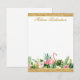 Floral tropical acuática con tarjeta de nota personalizada Flamingo rosa con guión de oro y Purpurina de oro