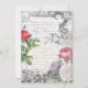 Agradables rosas vintage y ramo mixto en un pergamino envejecido con flores ornamentadas y escritura francesa.