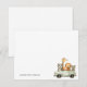 Esta tarjeta de notas para niños presenta un diseño limpio y minimalista en la esquina inferior derecha de una camioneta vintage verde claro que lleva a un grupo alegre de animales, incluyendo un oso, león, jirafa, zorro y un oso más pequeño. El resto de la tarjeta está en blanco, creando una estética simple y elegante.