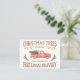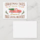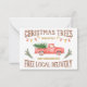 Nuestro letrero publicitario de "Árbol de Navidad" favorito que hemos diseñado hasta ahora. Contiene dos grandes fuentes complementarias, elementos de arte gráfico de acuarela, el icónico camión rojo vintage, estilo antiguo, luces de árbol de gran bulbo y algunas ramas para enmarcar la parte inferior. Se lee: "Árboles de Navidad, Cortados Frescos Diariamente, Propiedad Familiar desde 1972, Entrega Local Gratuita". Por Monkey Business Graphic Design, julio de 2020.