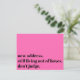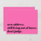 En esta tarjeta en tono de burla, se usó un tipo de letra negrita para representar "nueva dirección. todavía viviendo de cajas. no juzguen." en el frente. Detalles actualizados, junto con un agradable "¡Quédate en contacto!" aparecen en la parte de atrás. Todos los tipos de letra, colores y texto se pueden cambiar para adaptarlos a sus propias necesidades.