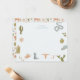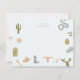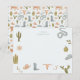 Tarjeta de nota de papelería para niños con ilustración dibujada a mano de motivos temáticos de vaquero incluyendo cactus, serpiente, sombrero de vaquero, botas de vaquero, etc.