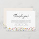 Celebra la llegada de tu pequeño con esta encantadora tarjeta de agradecimiento de Flor Silvestre! Diseñado para adaptarse a nuestra colección de duchas para bebés de flores silvestres, cuenta con un delicado diseño floral, un fondo blanco limpio y una moderna caligrafía de escritura para un toque atemporal. Perfecto para una ducha de bebé sin distinción de género, esta tarjeta es una hermosa manera de expresar gratitud a sus invitados mientras mantienen un tema cohesivo. ¡Una buena elección para las duchas de primavera o verano inspiradas en la naturaleza! Use el botón azul "Personalizar" para añadir su información. Diseño de Ana Garza/Kardz Studio. ¿Te gusta este diseño? Haga clic en el botón "seguir tienda" para ver más como se ve. Si tienes alguna pregunta, por favor contacta conmigo a través de la charla de Zazzle.