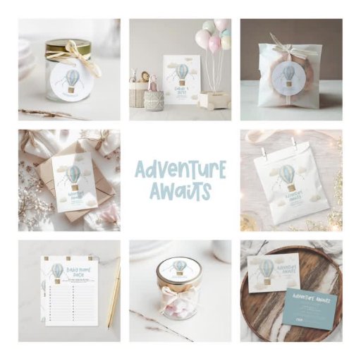 Adventure awaits blue hot air balloon baby showerDiseñado por Stacy Speakman-Cooke