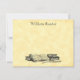 Tarjetas de nota personalizado con letras antiguas para su nombre, con un grabado de libros y un relleno de escritura en negro sobre un fondo de pergamino falso opcional, frontal y posterior.