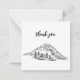 This stationary thank you note card is sketched in pencil. It signifies peace, stillness, strength and beauty with a mountain and valley with a cabin and trees.